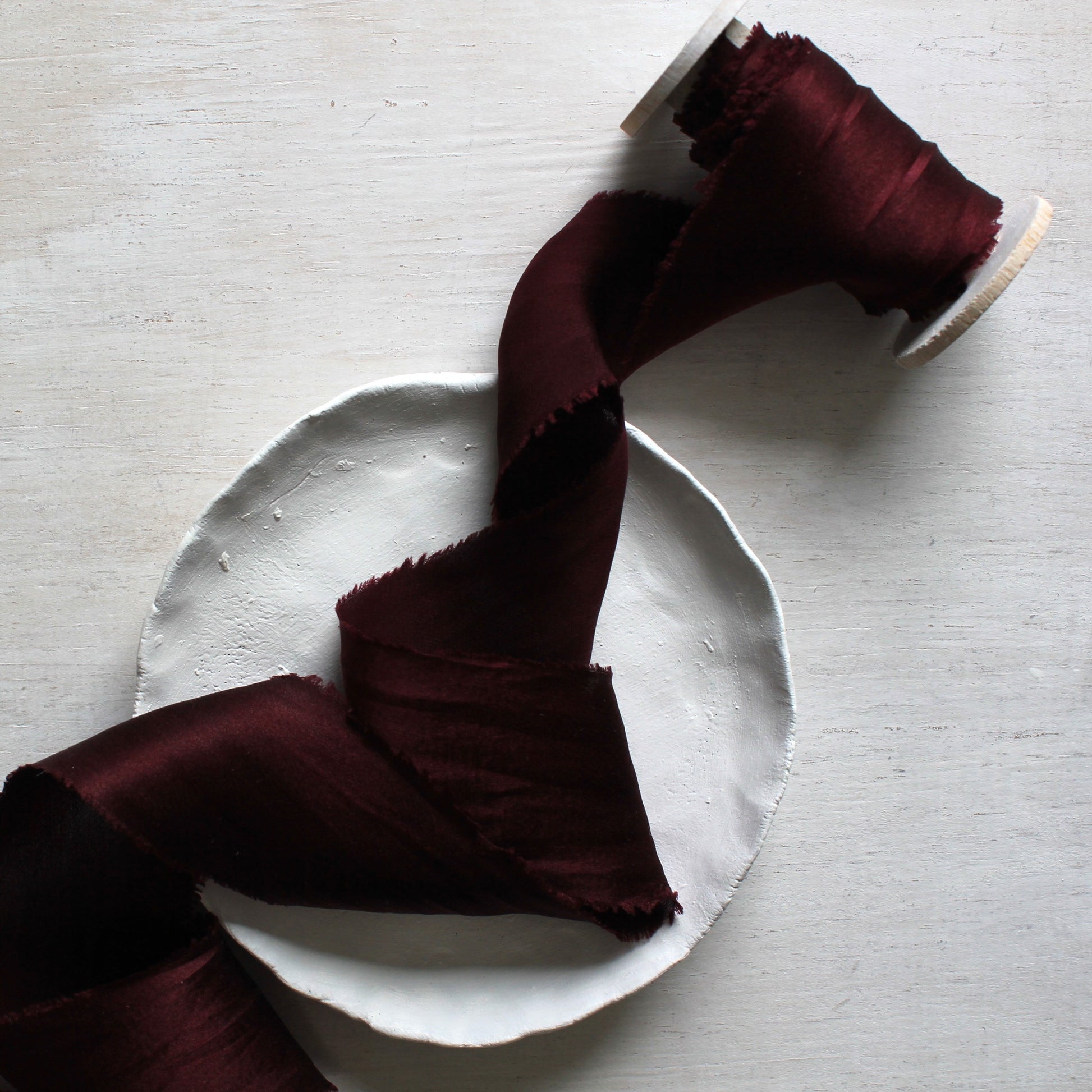 BURGUNDY Silk Charmeuse Ribbon Bias Cut