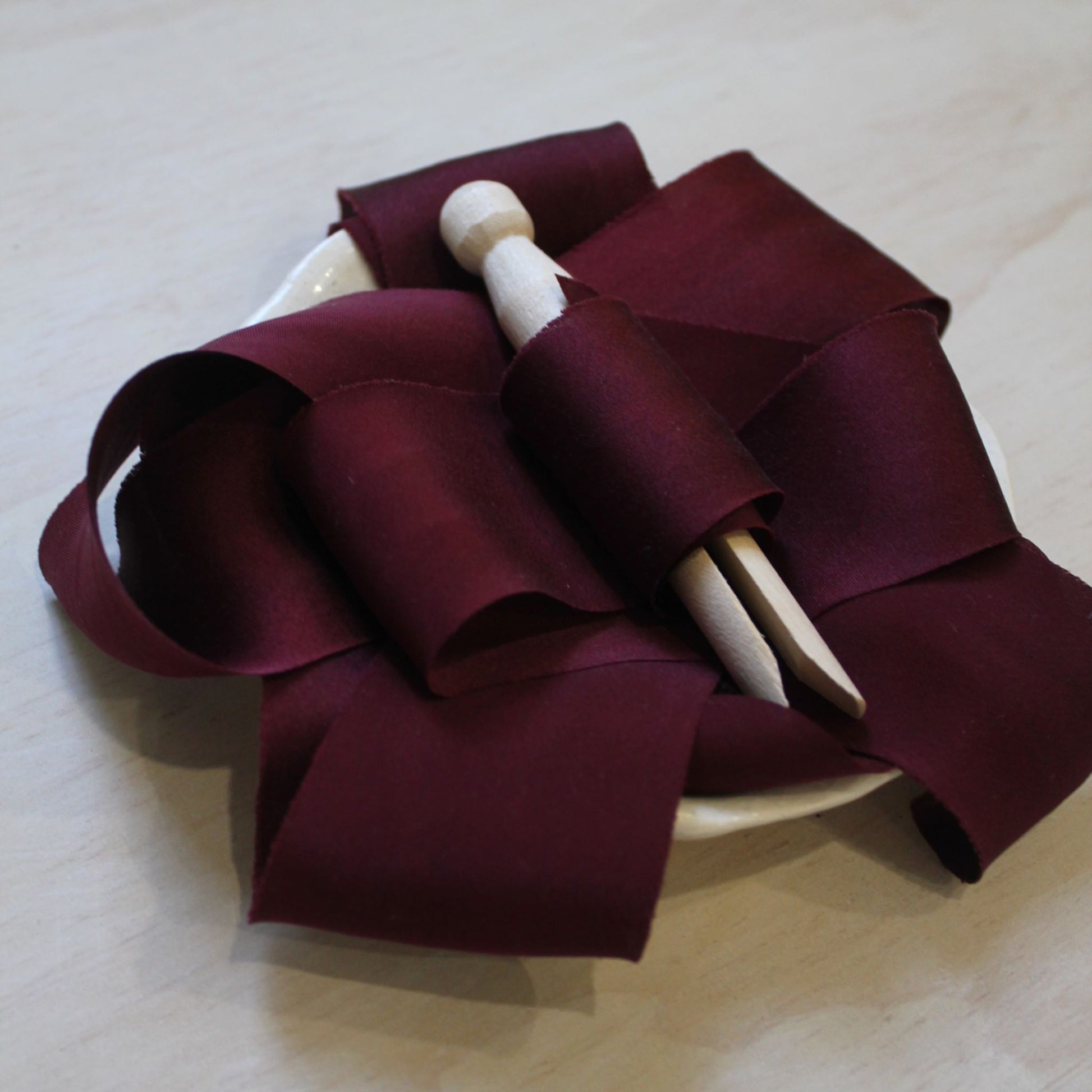 BURGUNDY Silk Charmeuse Ribbon Bias Cut (hand cut)