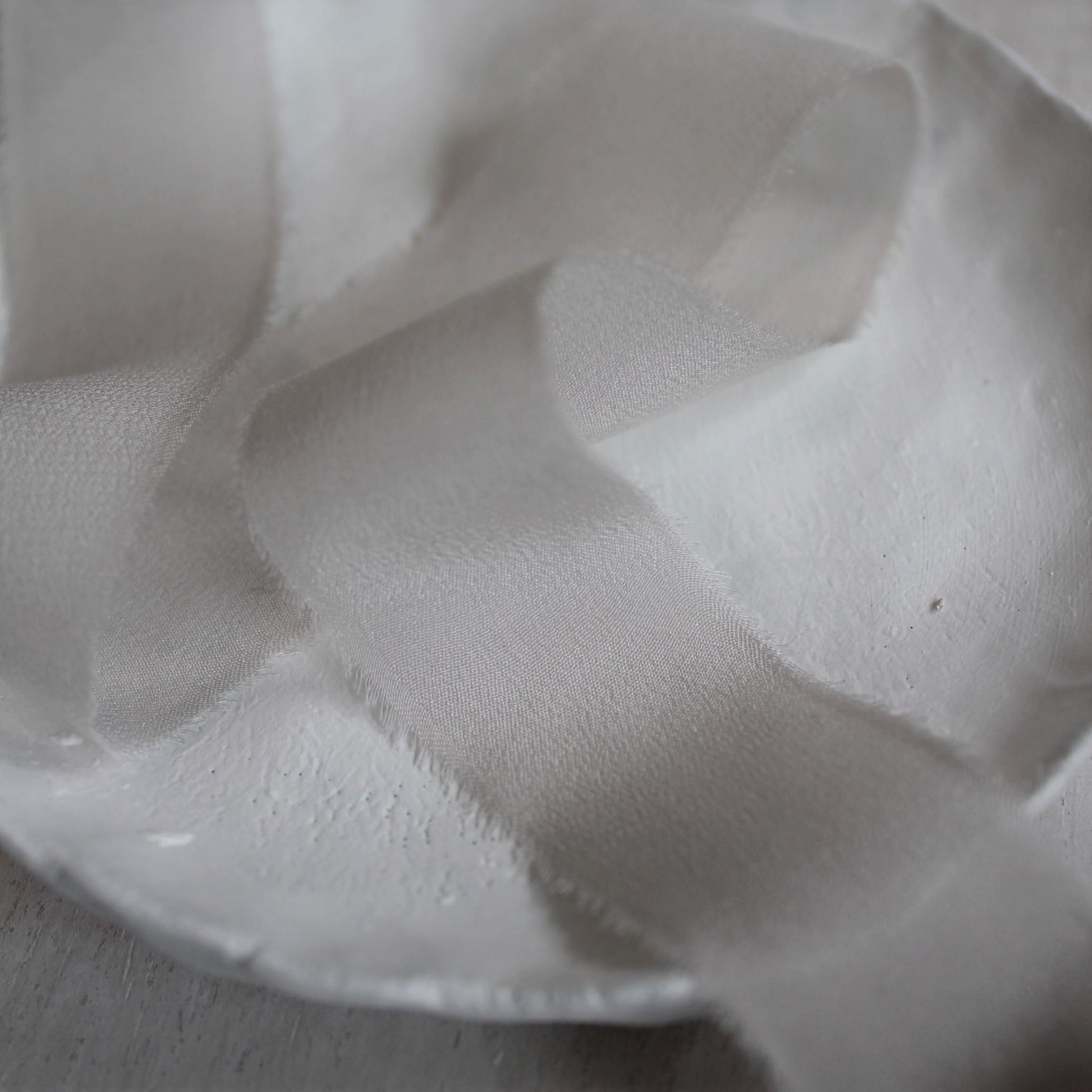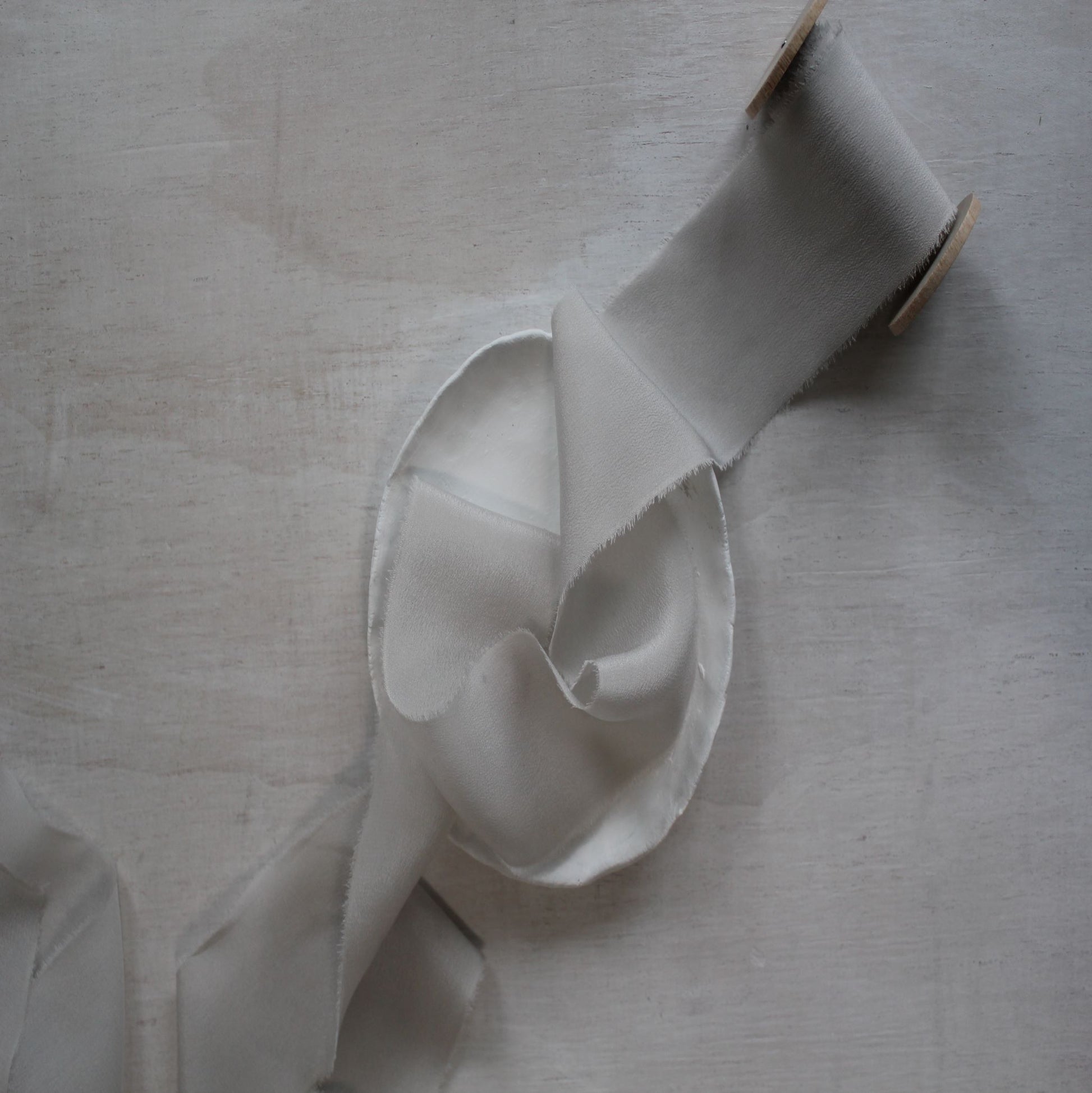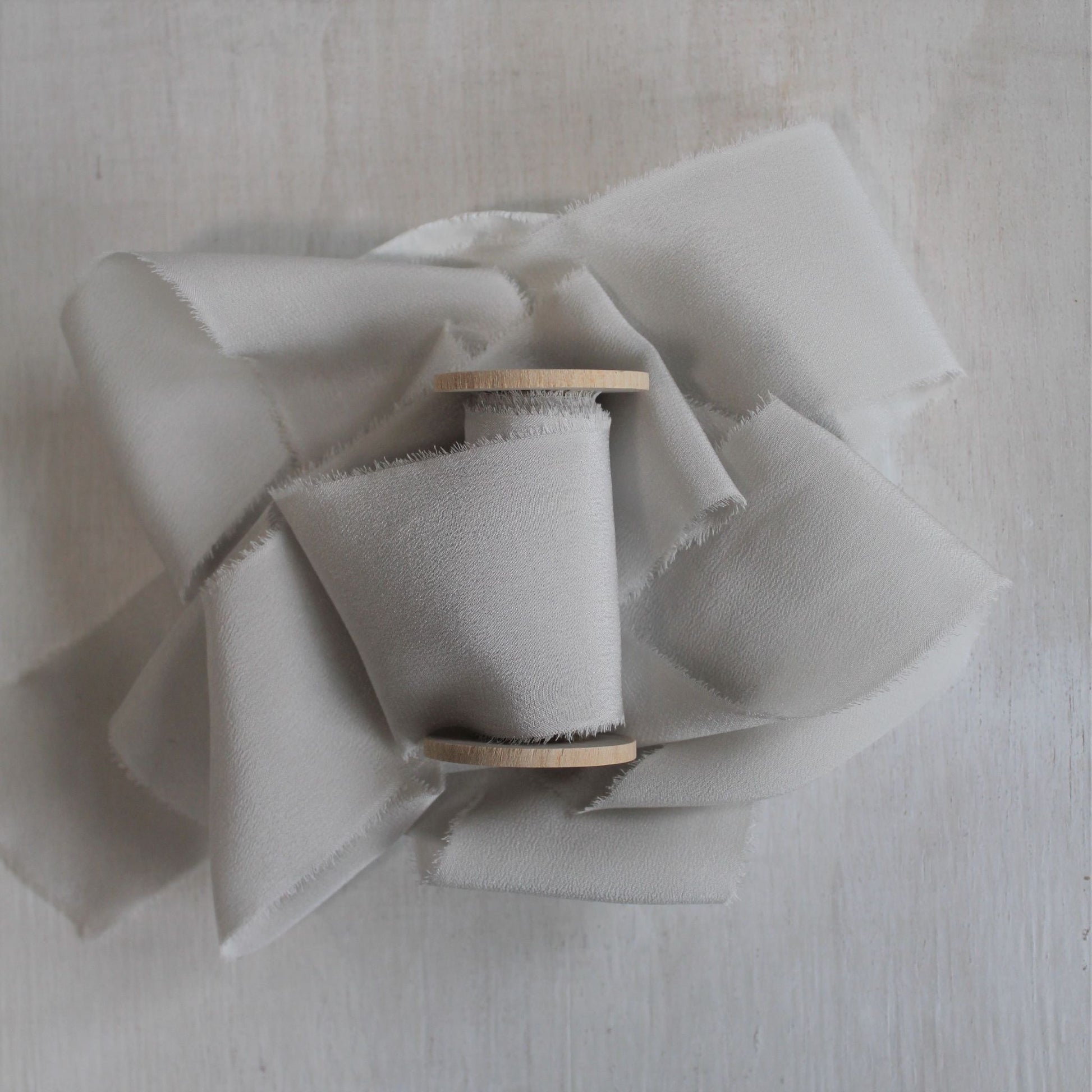 PALE GREY Silk Crepe de Chine Ribbon Hand Torn