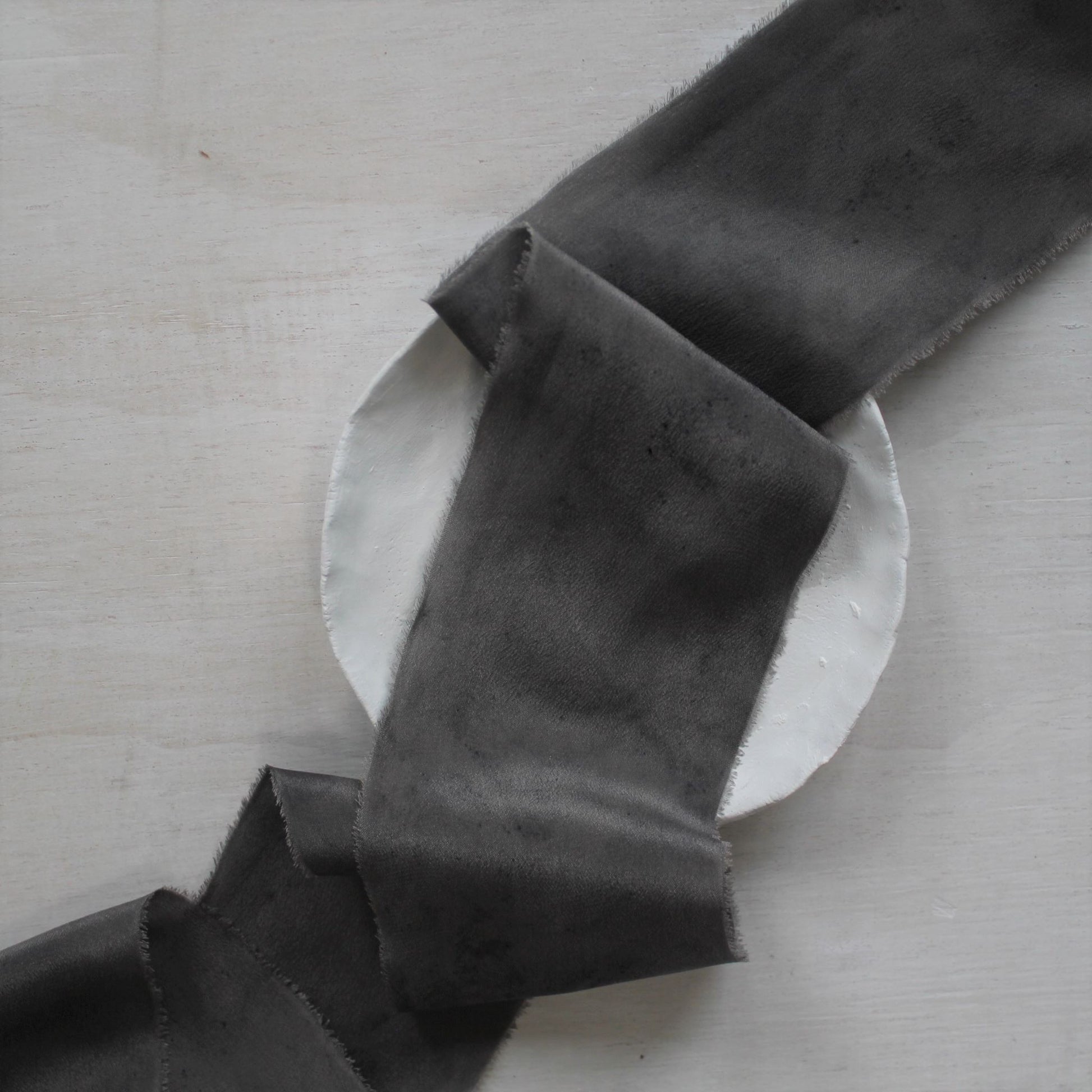CHARCOAL Silk Crepe de Chine Ribbon Hand Torn LAST CHANCE