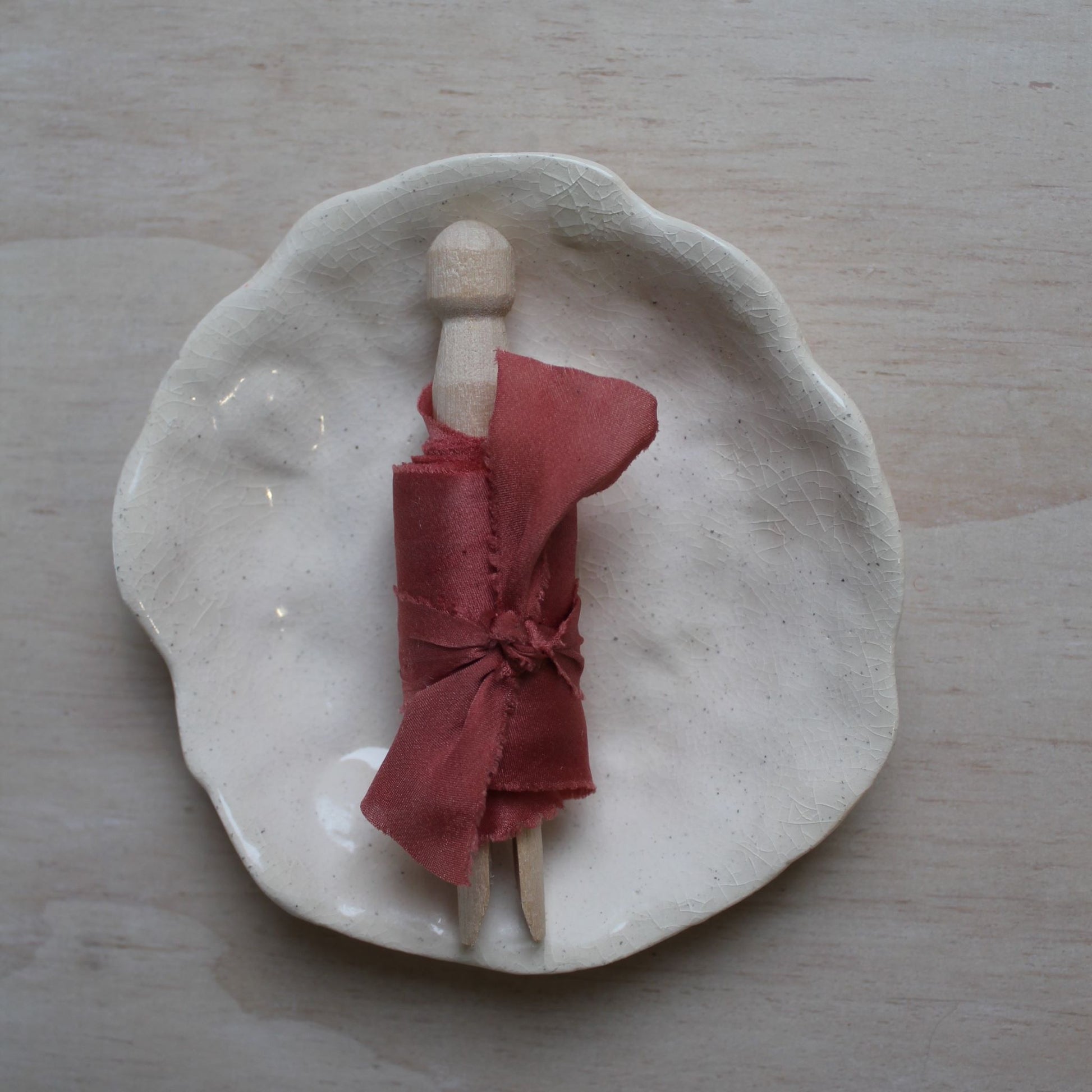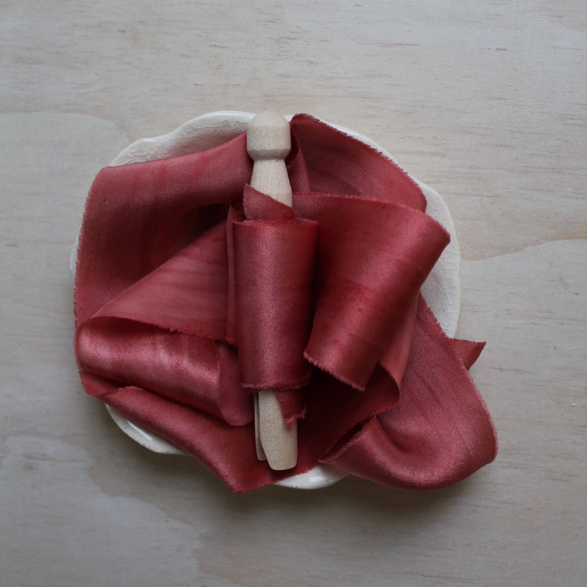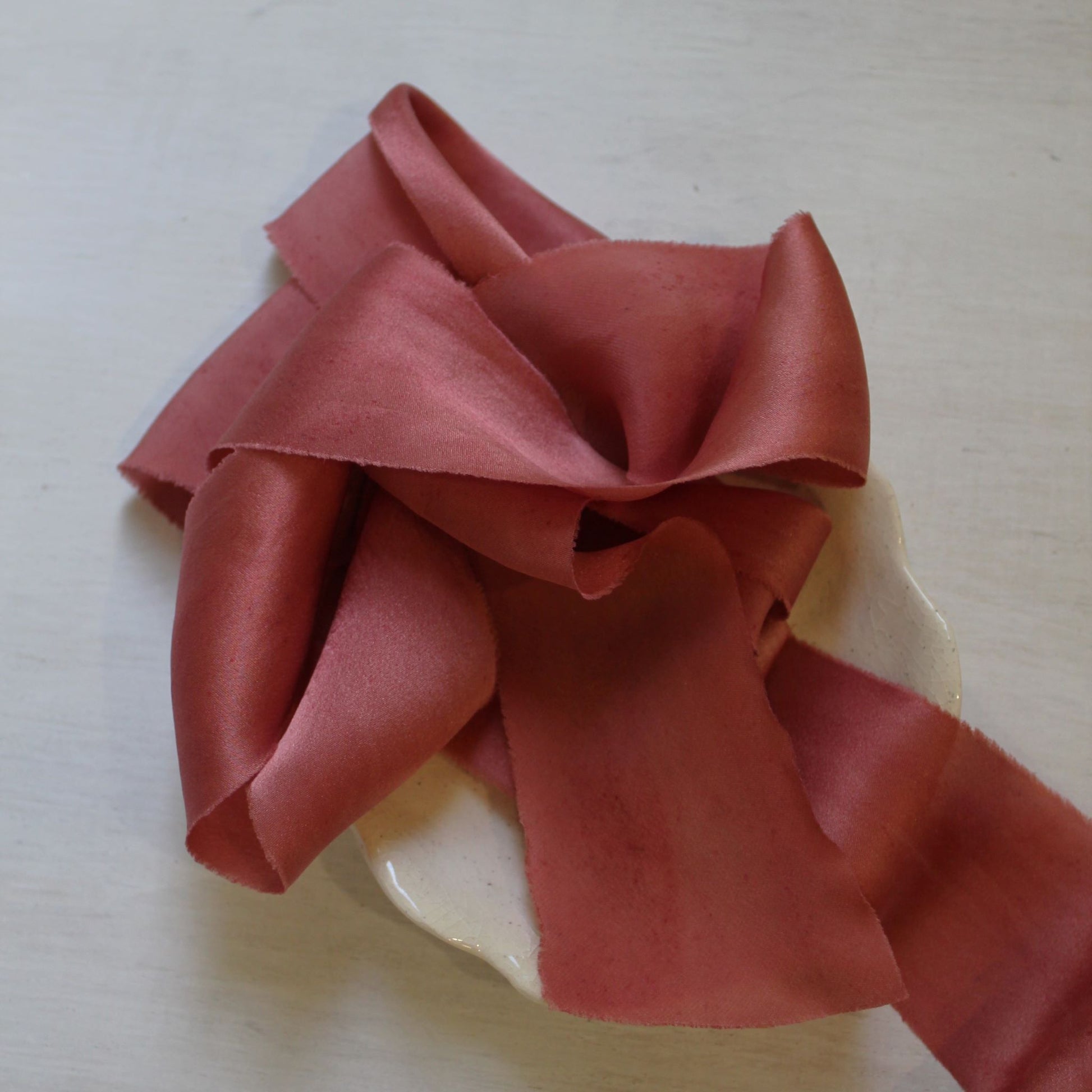 All of our silk ribbons are hand-dyed using natural dyes and are thoroughly washed before reaching you. Since the colors come directly from nature, each dye lot may vary slightly, and you may notice subtle differences or markings throughout the ribbon.