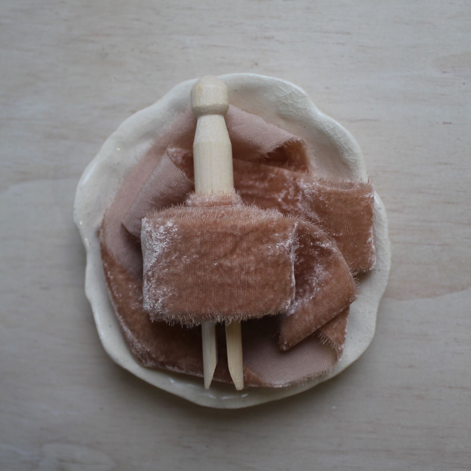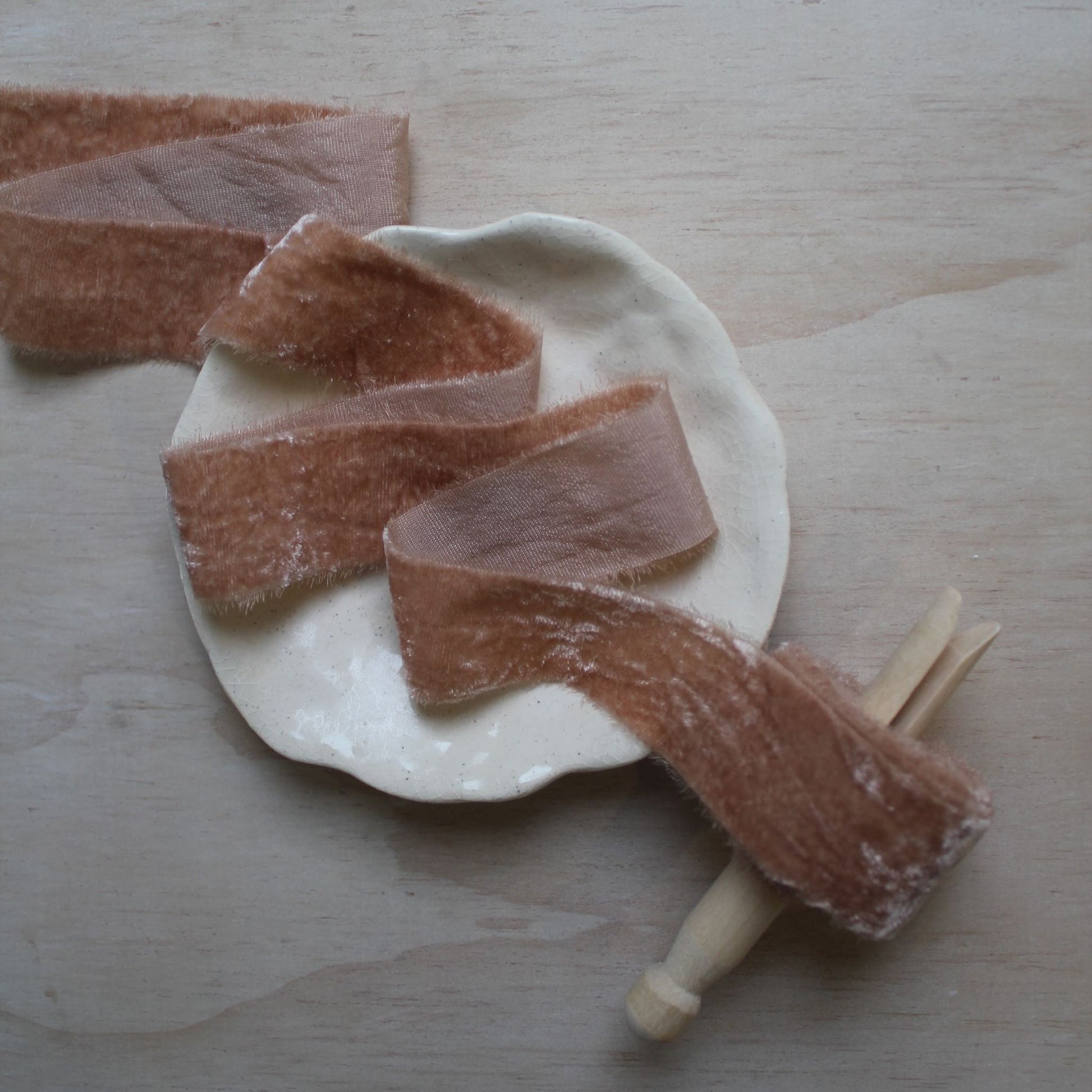 DUSTY ROSE Silk Velvet Ribbon Hand Torn