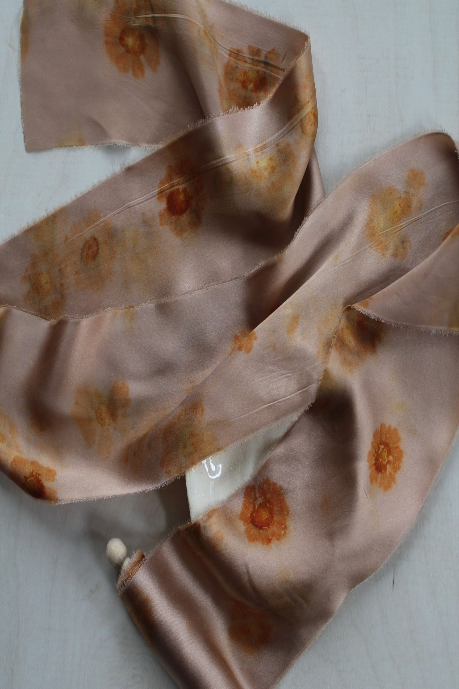 FLOWER Print (Coreopsis) bundle dyed silk ribbon