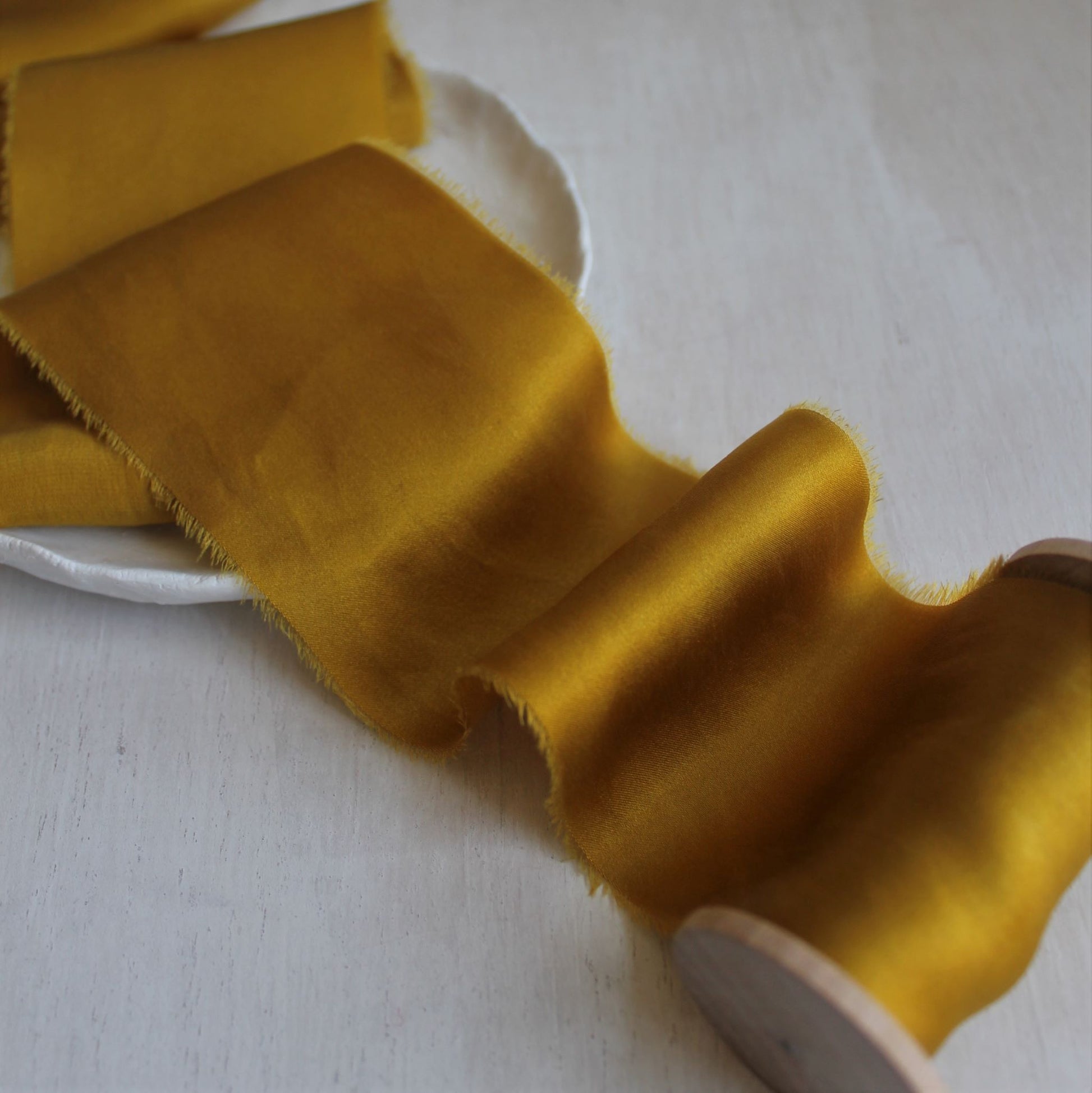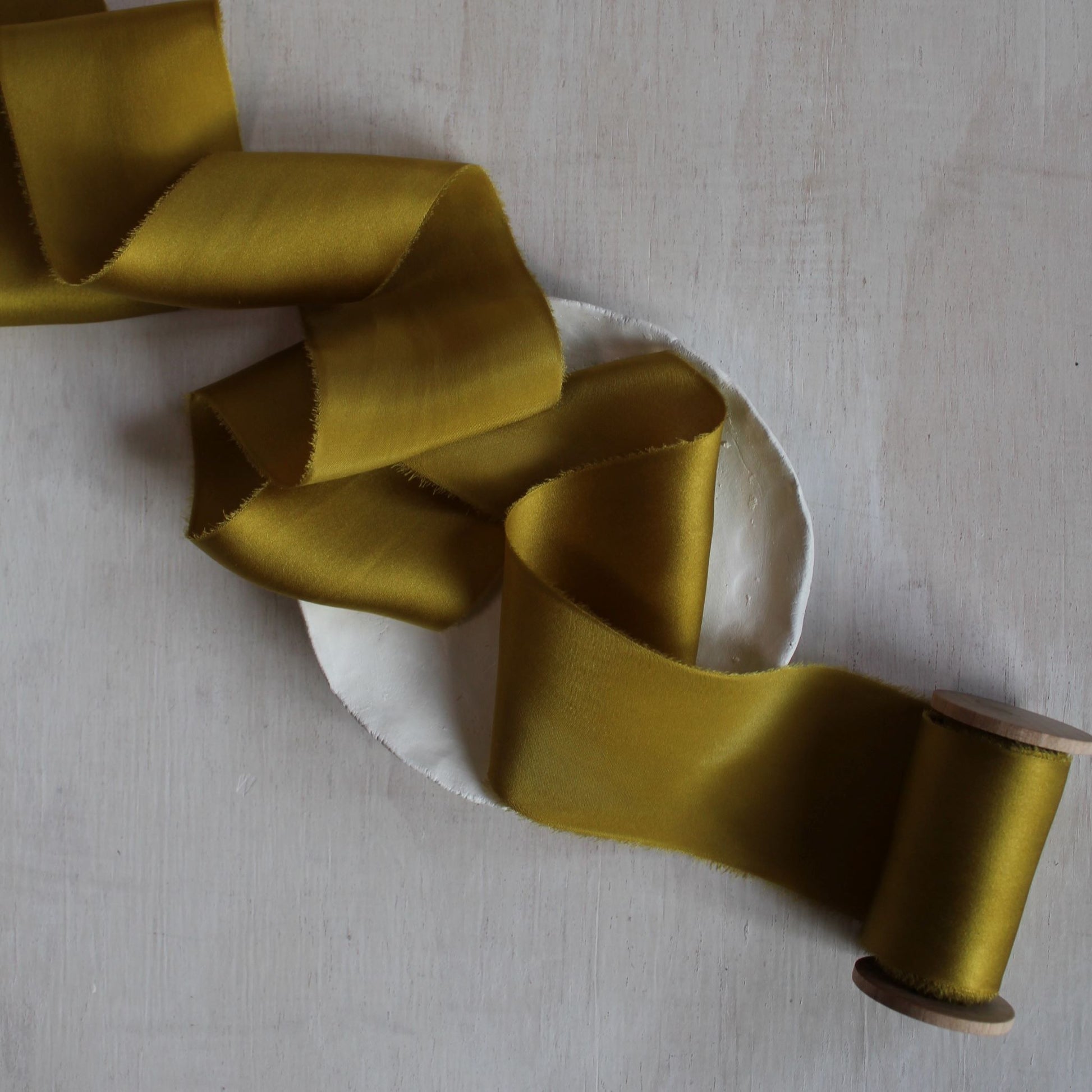 All of our silk ribbons are hand-dyed using natural dyes and are thoroughly washed before reaching you. Since the colors come directly from nature, each dye lot may vary slightly, and you may notice subtle differences or markings throughout the ribbon.