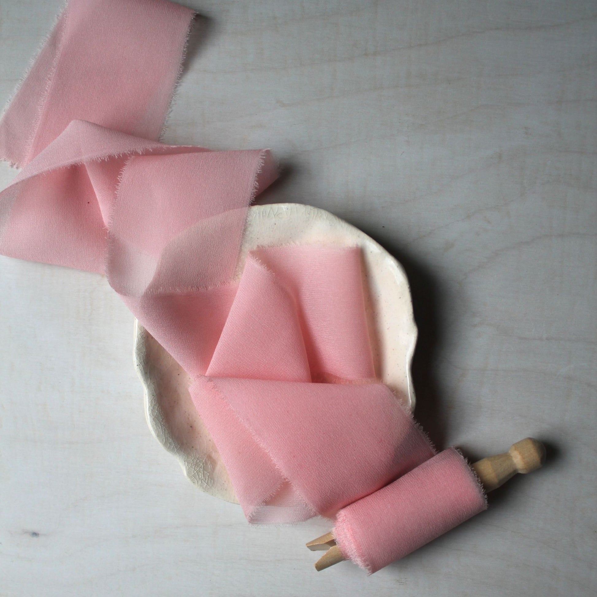 Our Iridescent Pink Silk Chiffon Ribbon is a luxurious and delicate addition to your wedding decor, stationery, or craft projects. Hand-dyed using natural methods, this ribbon features soft, shimmering pink tones that capture the light beautifully, creating a stunning effect for any occasion.
