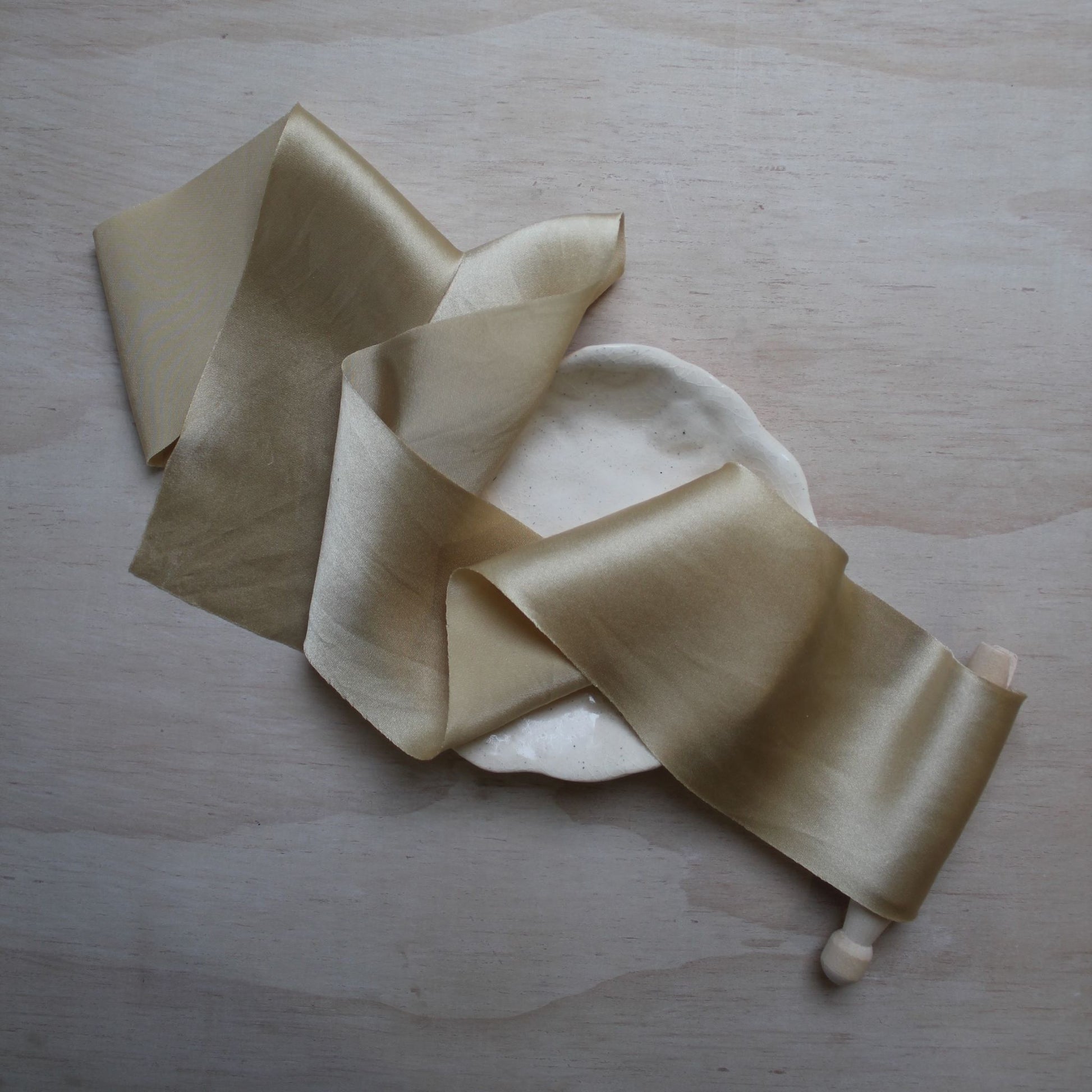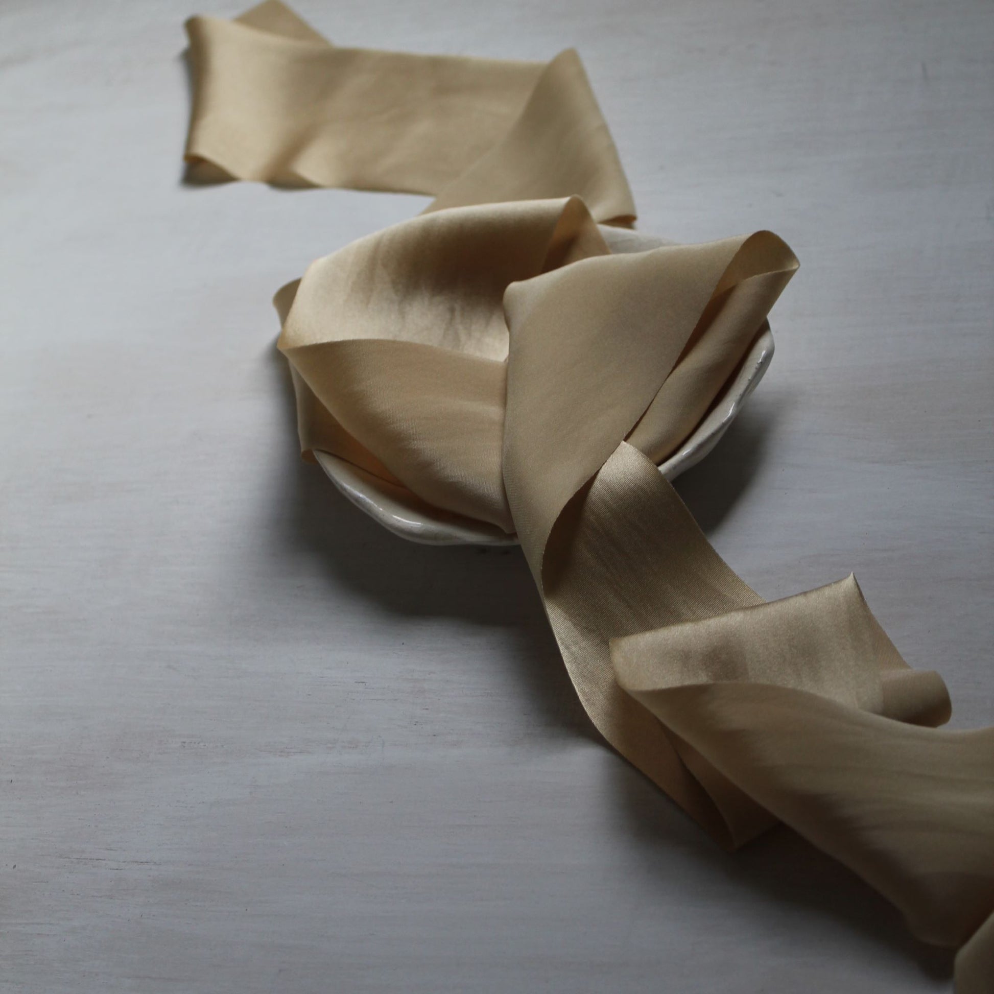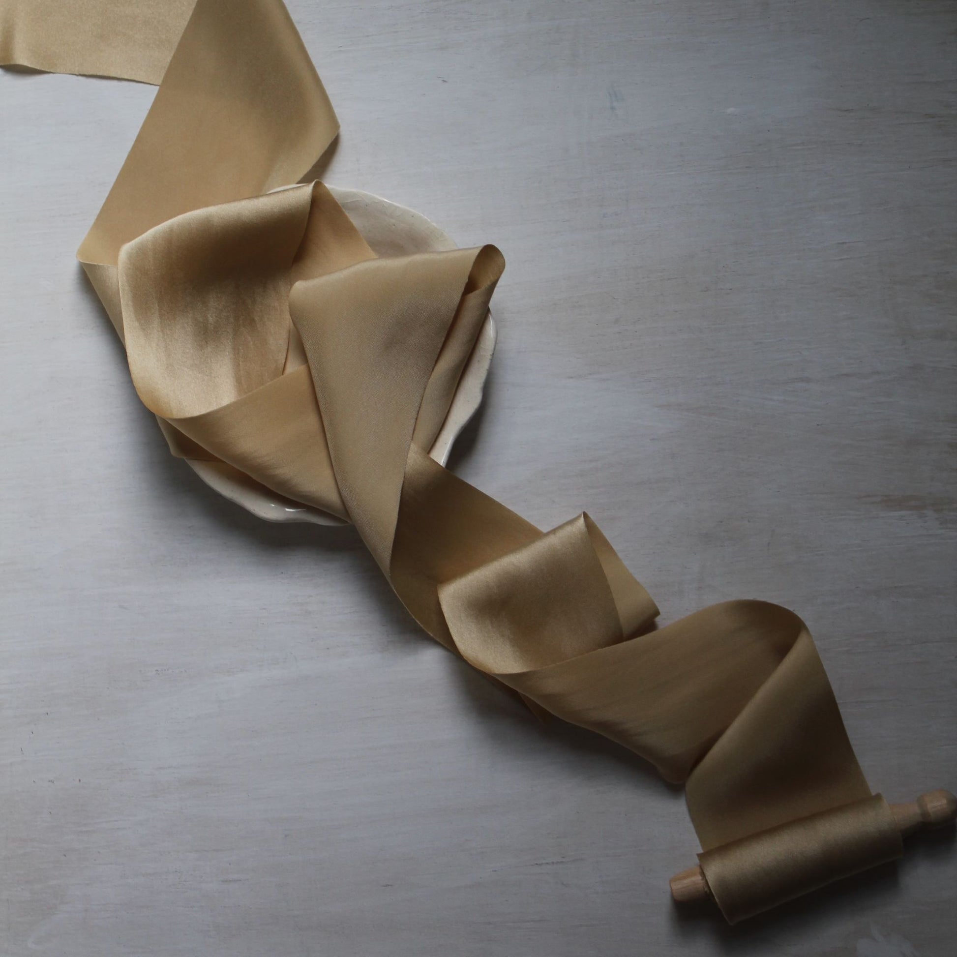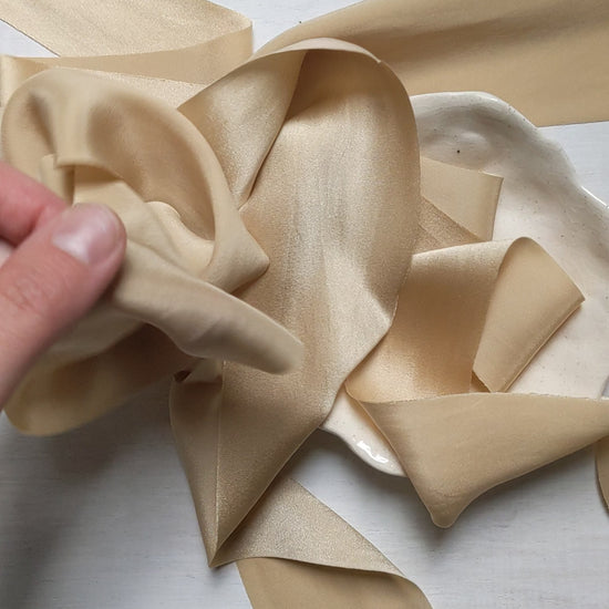 All of our silk ribbons are hand-dyed using natural dyes and are thoroughly washed before reaching you. Since the colors come directly from nature, each dye lot may vary slightly, and you may notice subtle differences or markings throughout the ribbon.