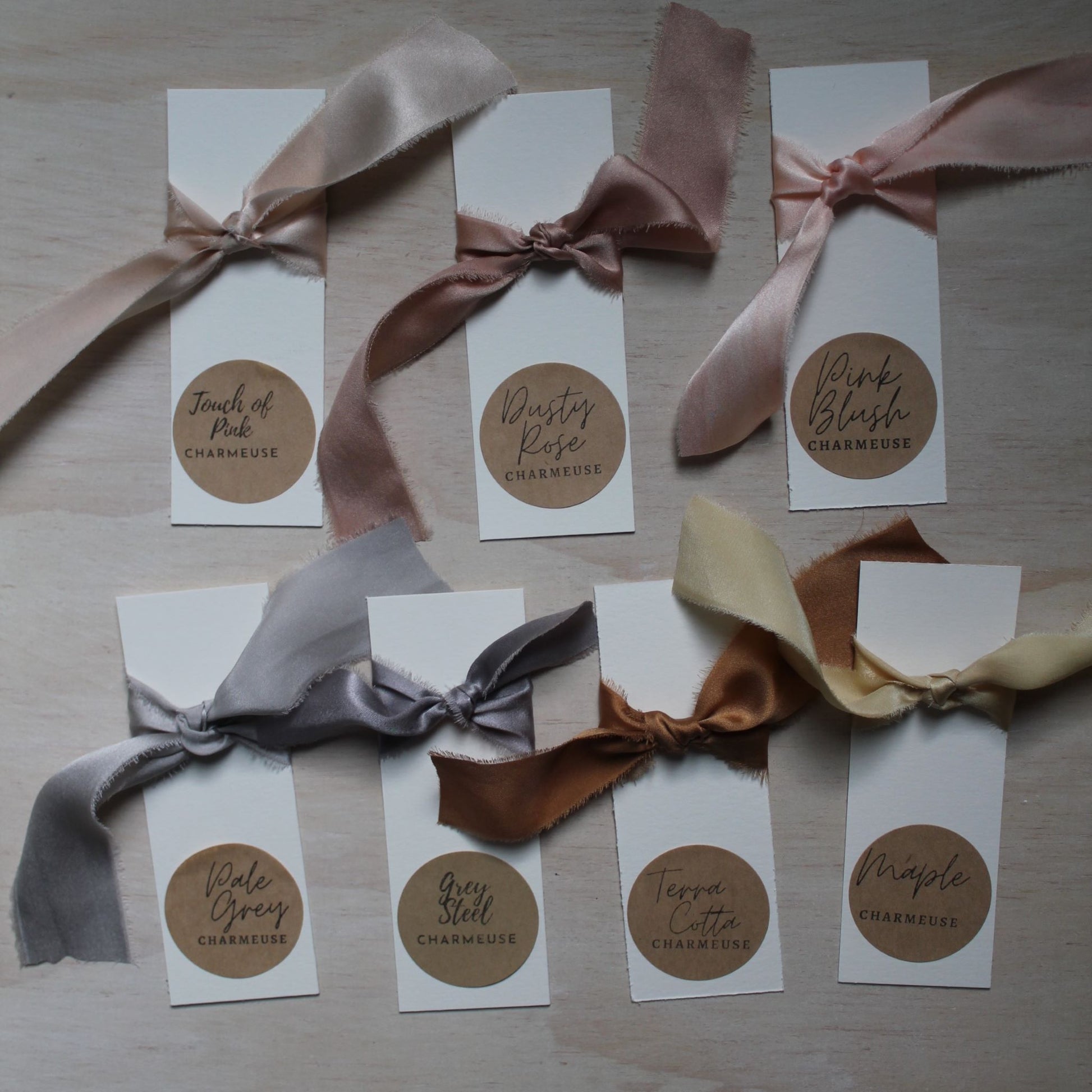 All of our silk ribbons are hand-dyed using natural dyes and are thoroughly washed before reaching you. Since the colors come directly from nature, each dye lot may vary slightly, and you may notice subtle differences or markings throughout the ribbon.