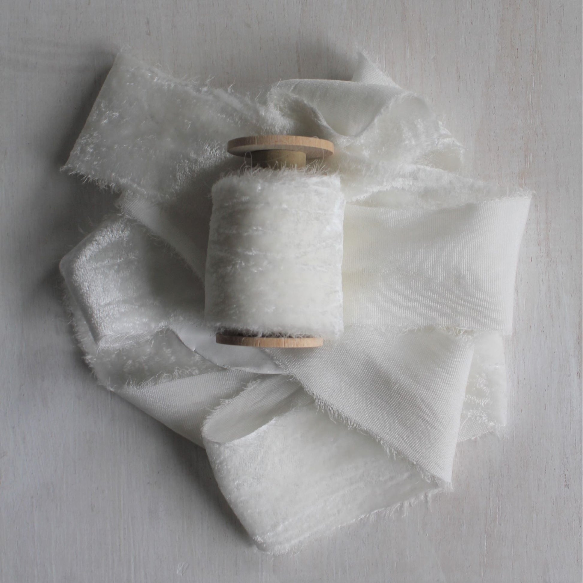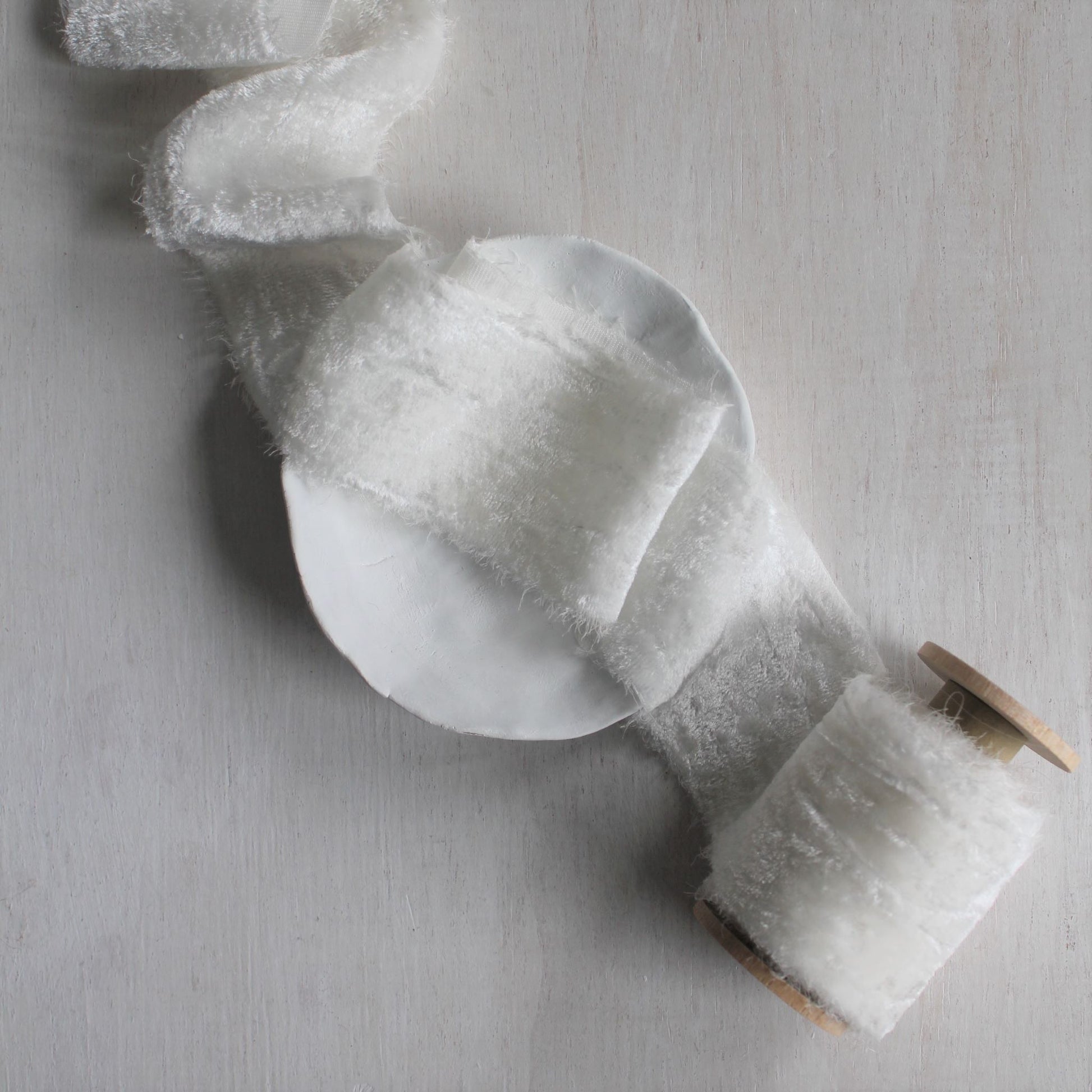 Our hand-torn ribbons feature a soft, feathered edge. If you notice a loose thread, you can either trim it with scissors or pull it out completely.